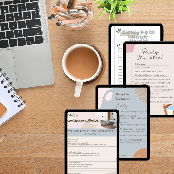 Room-by-room decluttering strategies, the 5-category sorting system, and how to make your spaces work for YOUR real life (not just Pinterest).